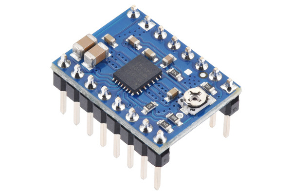 Stepper motor drivers are specifically designed to drive stepper motors, which are capable of continuous rotation with precise position control, even without a feedback system. Our stepper motor drivers offer adjustable current control and multiple step resolutions, and they feature built-in translators that allow a stepper motor to be controlled with simple step and direction inputs. These modules are generally basic carrier boards for a variety of stepper motor driver ICs that offer low-level interfaces like inputs for directly initiating each step. An external microcontroller is typically required for generating these low-level signals.