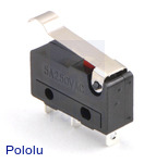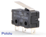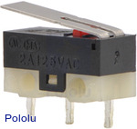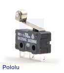 This single-pole, double-throw (SPDT) momentary switch can be used as a general-purpose micro switch or tactile bump sensor for your robot. The switch body dimension is 20.0 x 6.4 x 10.2 mm, and the 16.3mm lever arm is has a roller at the tip.