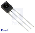 The Vishay TSOP34156 is a general-purpose modulated IR receiver for IR-based remote-control projects. It features a wide operating voltage range and allows for relatively high data rates; this particular unit is tuned for a 56 kHz carrier frequency. This is the IR receiver used in the Pololu IR Beacon.
