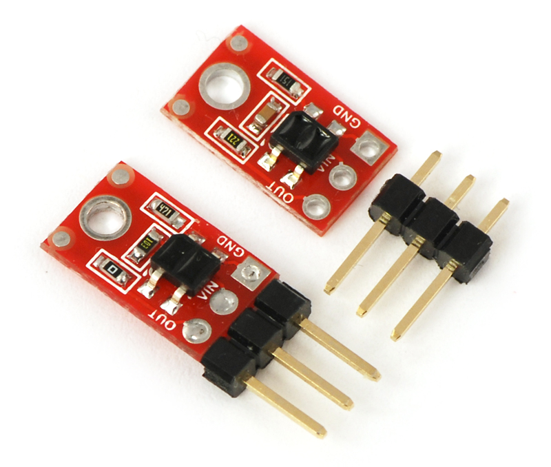 QTR-1A and QTR-1RC reflectance sensors with included 3×1 0.1" header pins.