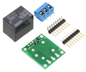 The Pololu basic relay carrier modules make it easy to control electrically isolated, single-pole, double-throw (SPDT) switches from low-voltage, low-current control signals. The modules are available in single-channel and dual-channel versions with 5 V or 12 V power relays—Omron G5LE-14-DC5 and G5LE-14-DC12 (1MB pdf), respectively—and with a variety of connector and assembly options.