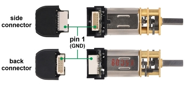 Pin 1 (GND) on the Micro Metal Gearmotors with encoders. |