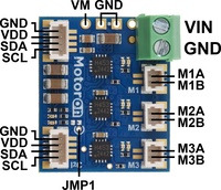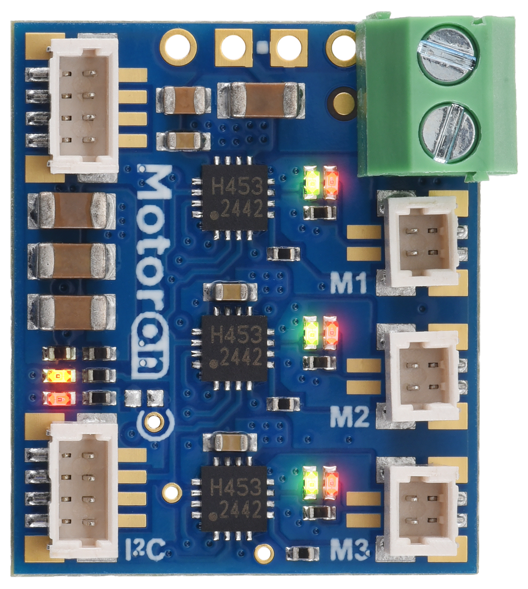 Using a Motoron M3T453 Triple I²C Motor Controller with JST SH-Style Connectors to control three motors. |