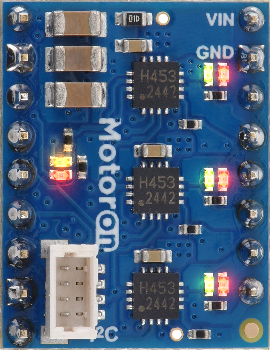 Brushed DC Motor Controllers » Motoron Motor Controllers » Motoron M3T453 Triple Motor Controllers »