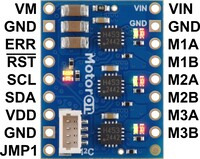 Pinout of the Motoron M3T453 Triple I²C Motor Controller with 0.1″-Pitch Through-Holes. |
