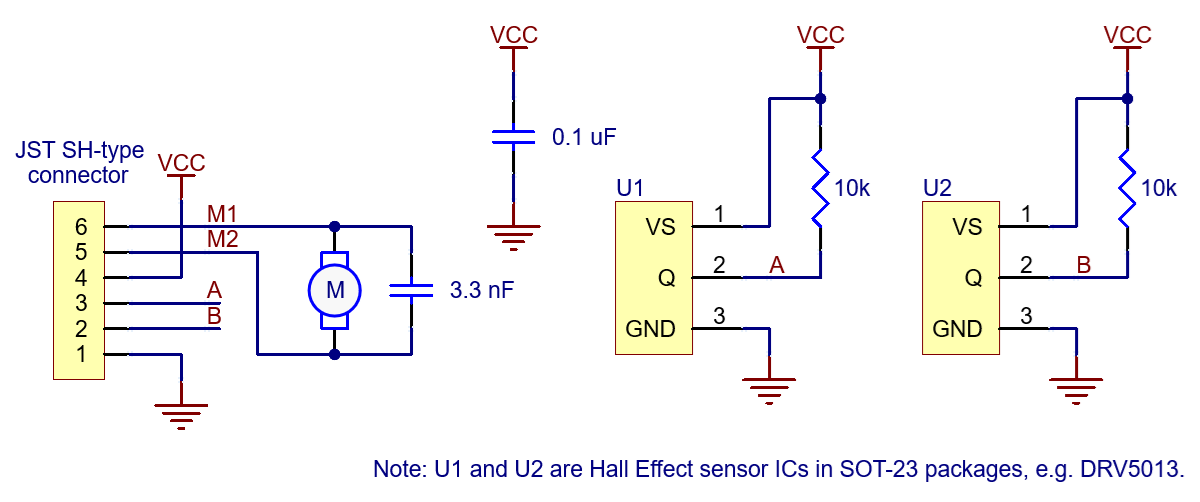 Schematic diagram of the integrated Micro Metal Gearmotor encoder. |