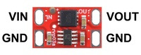 Pinout of the Pololu Reverse Voltage Protector, 4-75V, 8A. |