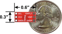 Isolated DC-DC Power Module, UCC33420, 5V/5.5V, 300mA, basic dimensions with US quarter for size reference. |
