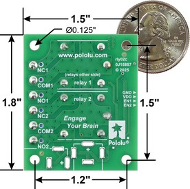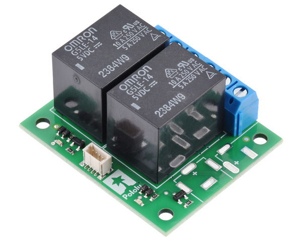 Pololu Basic 2-Channel SPDT Relay Carrier with 5VDC Relays, Terminal Blocks, and JST SH-Style Top-Entry Connector