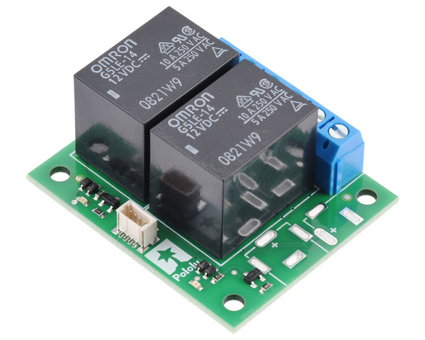 Pololu Basic 2-Channel SPDT Relay Carrier with 12VDC Relays, Terminal Blocks, and JST SH-Style Top-Entry Connector