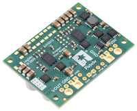 Step-Down Voltage Regulator D42V110Fx assembled with 0.1″-pitch male headers and 14 AWG wires (not included). |