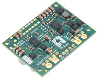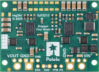 Step-Down Voltage Regulator D42V110Fx assembled with 0.1″-pitch male headers and 14 AWG wires (not included). |