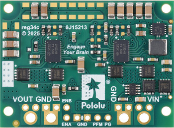 The D42V110Fx family of synchronous buck (step-down) voltage regulators generates lower output voltages from input voltages as high as 60 V. They are switching regulators (also called switched-mode power supplies (SMPS) or DC-to-DC converters), which makes them much more efficient than linear voltage regulators, especially when the difference between the input and output voltage is large. These regulators can typically support continuous output currents between 6 A and 16 A, depending on the input voltage and output voltage (see the Maximum continuous output current section below). In general, the available output current is higher for the lower-voltage versions than it is for the higher-voltage versions, and it decreases as the input voltage increases.
