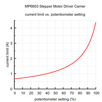 Current limit vs. potentiometer setting for the MP6603 Stepper Motor Driver Carrier. |