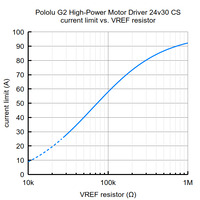 Current limit vs. VREF resistor for the Pololu G2 High-Power Motor Driver 24v30 CS. |