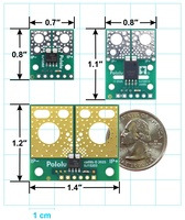 ACS37030 Current Sensor Compact Carriers (top) and Large Carrier (bottom) size comparison. |